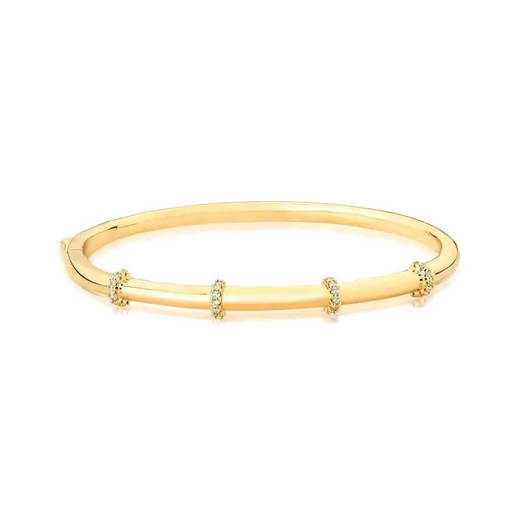 Bracelete de Contornos Cravejados de Zircônias - Banhado a Ouro 18K.