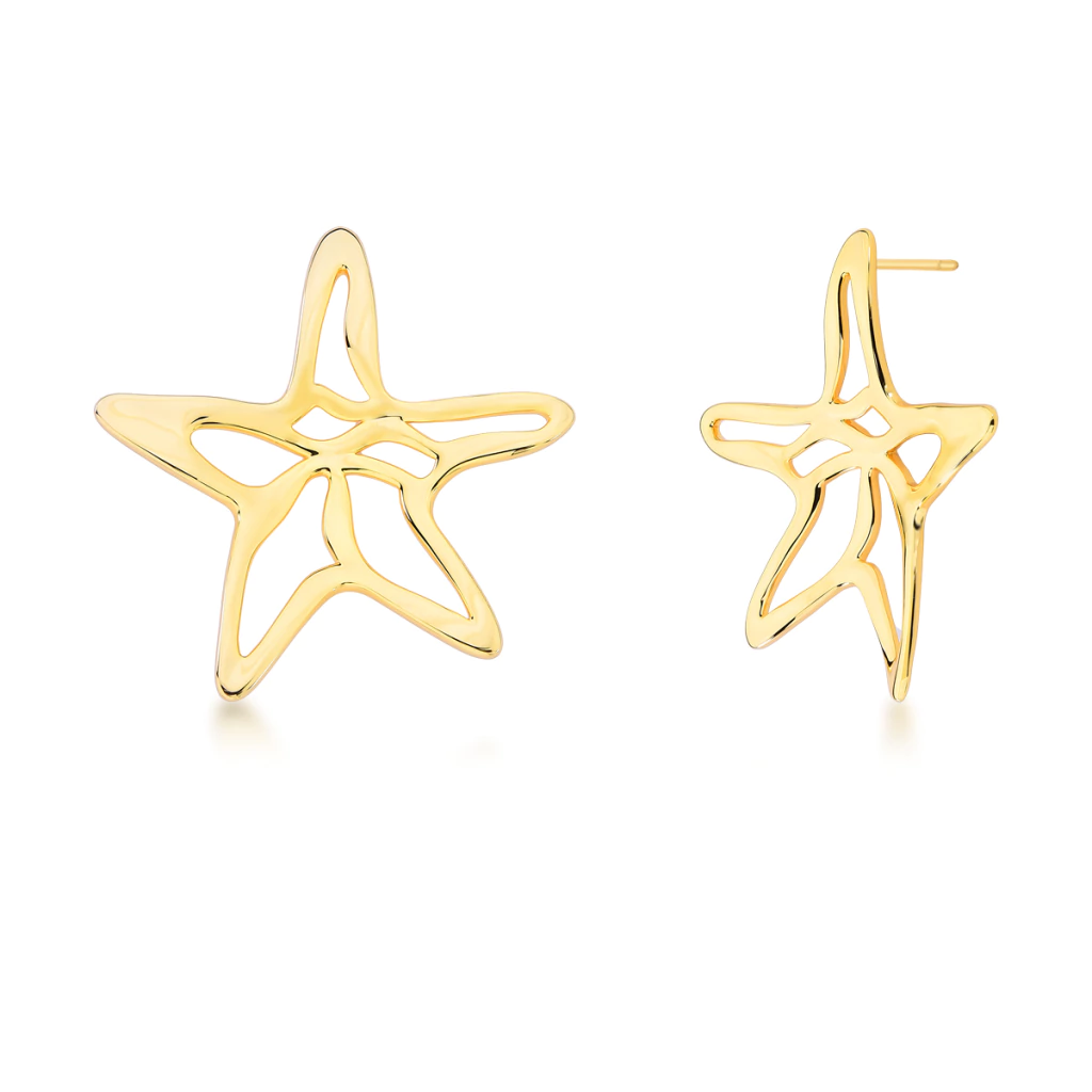 Brinco Estrela do Mar Liso, Vazado e Curvo - Banhado a Ouro 18K.