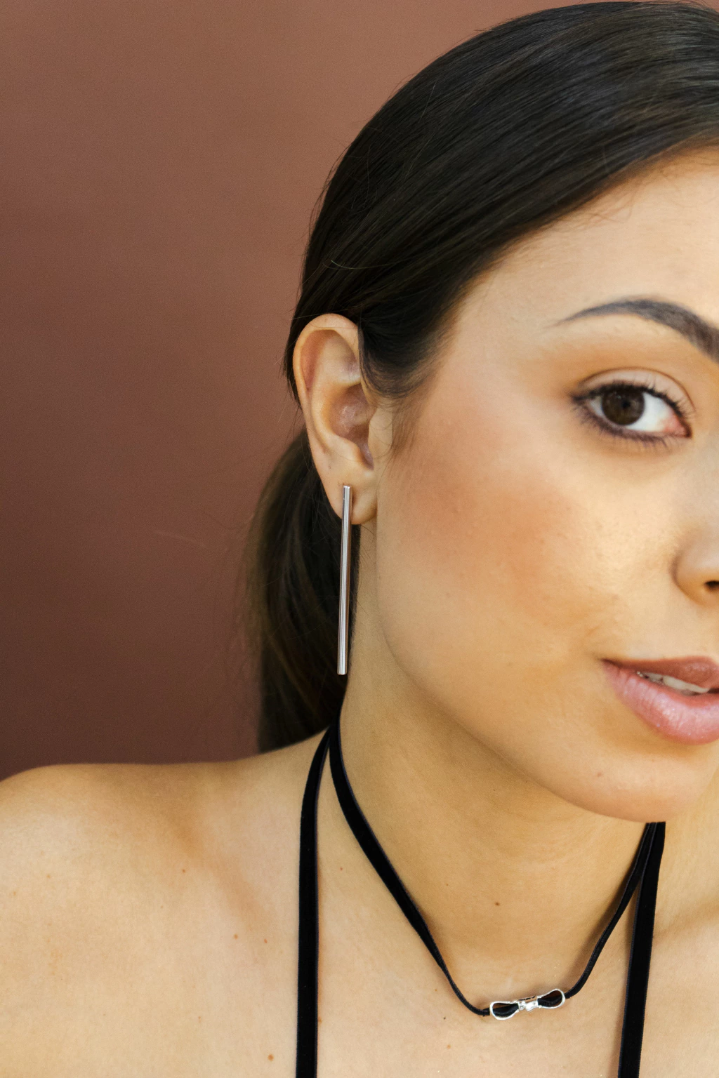 Brinco Tubo, Longo e Liso - Banhado a Ródio.