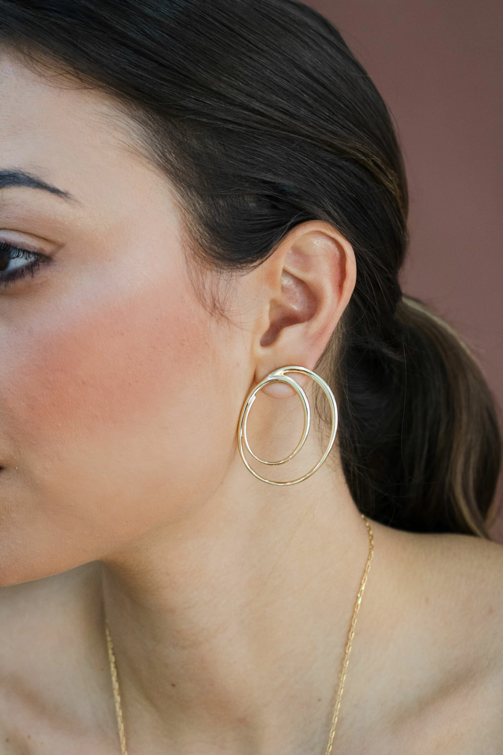 Brinco Oval Duas Voltas, Vazado e Liso - Banhado a Ouro 18K.