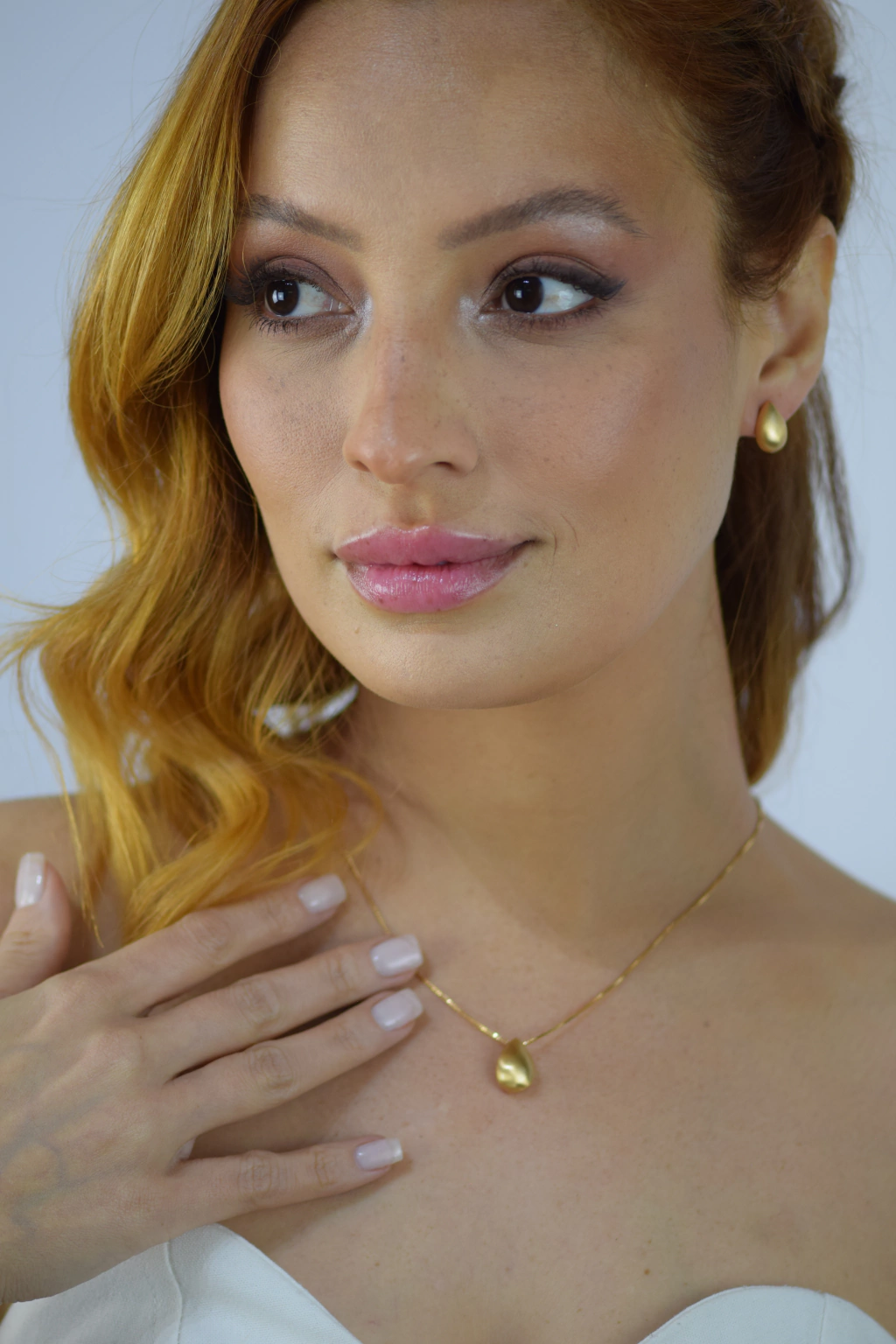 Conjunto de Brincos e Colar de Corrente Veneziana c/ Pingente em Formato de Gota Fosca, c/ Duas Opções de Banho Ouro 18K e Ródio.